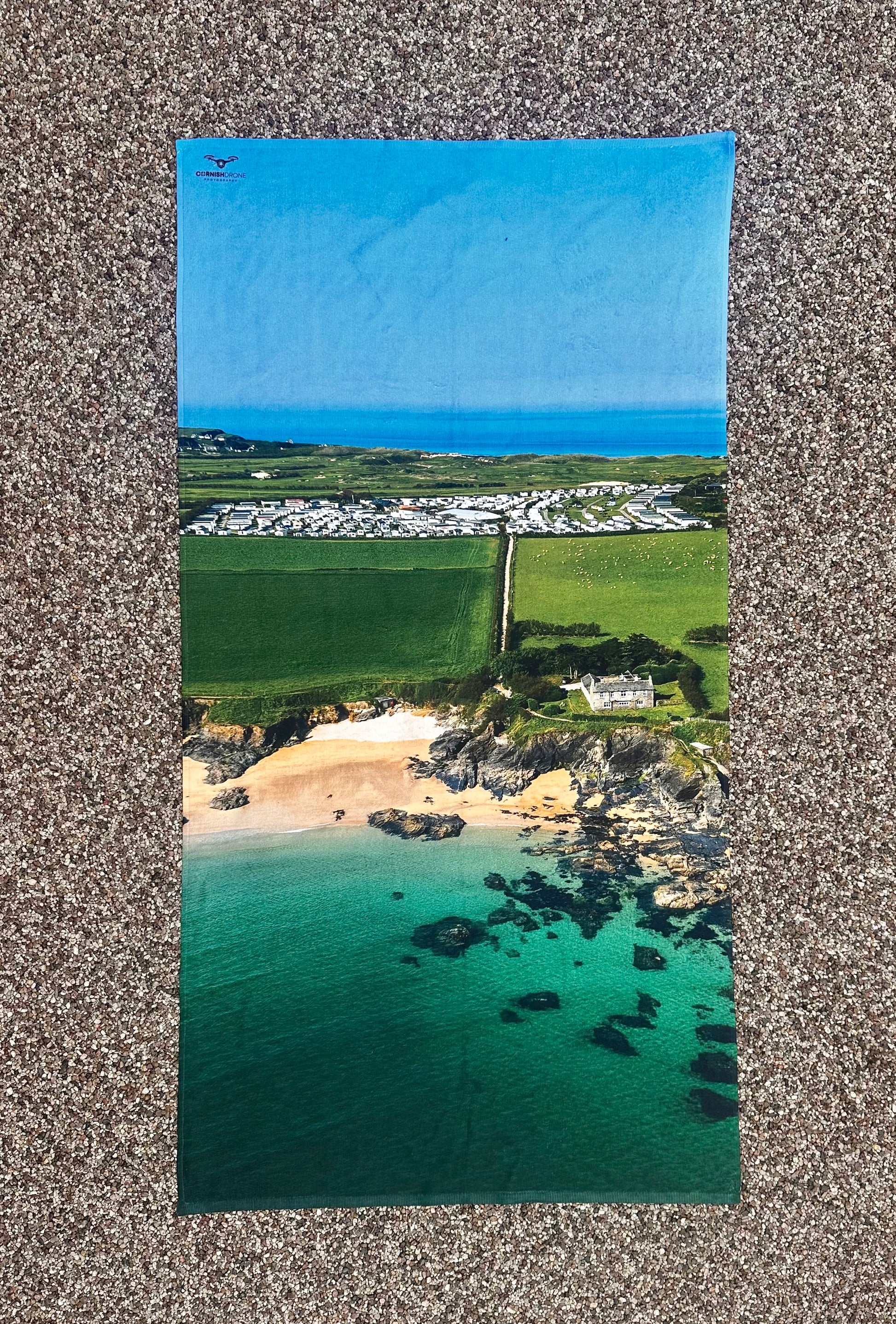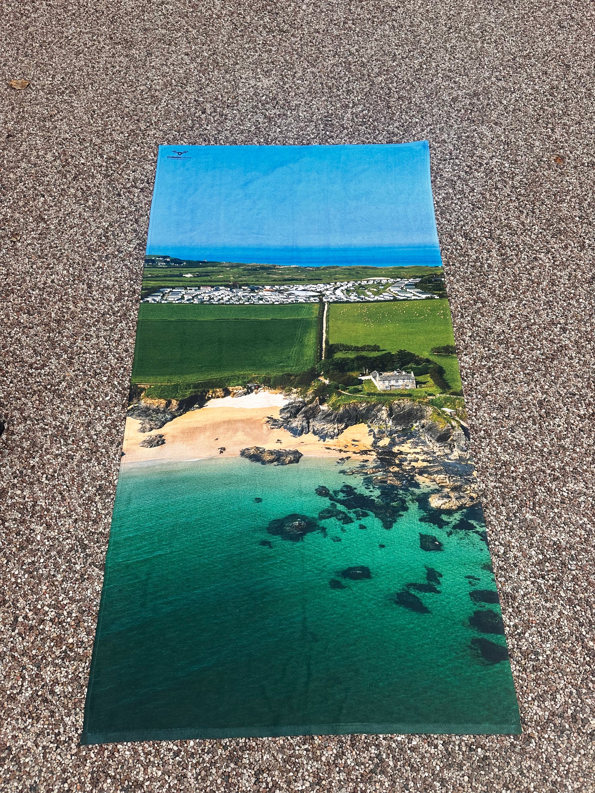 You can enjoy this view on your very own beach towel , designed in Cornwall and printed just inside Devon. This quality beach towel measures 140cm x 70 cm with a print to one side and white on the reverse.
