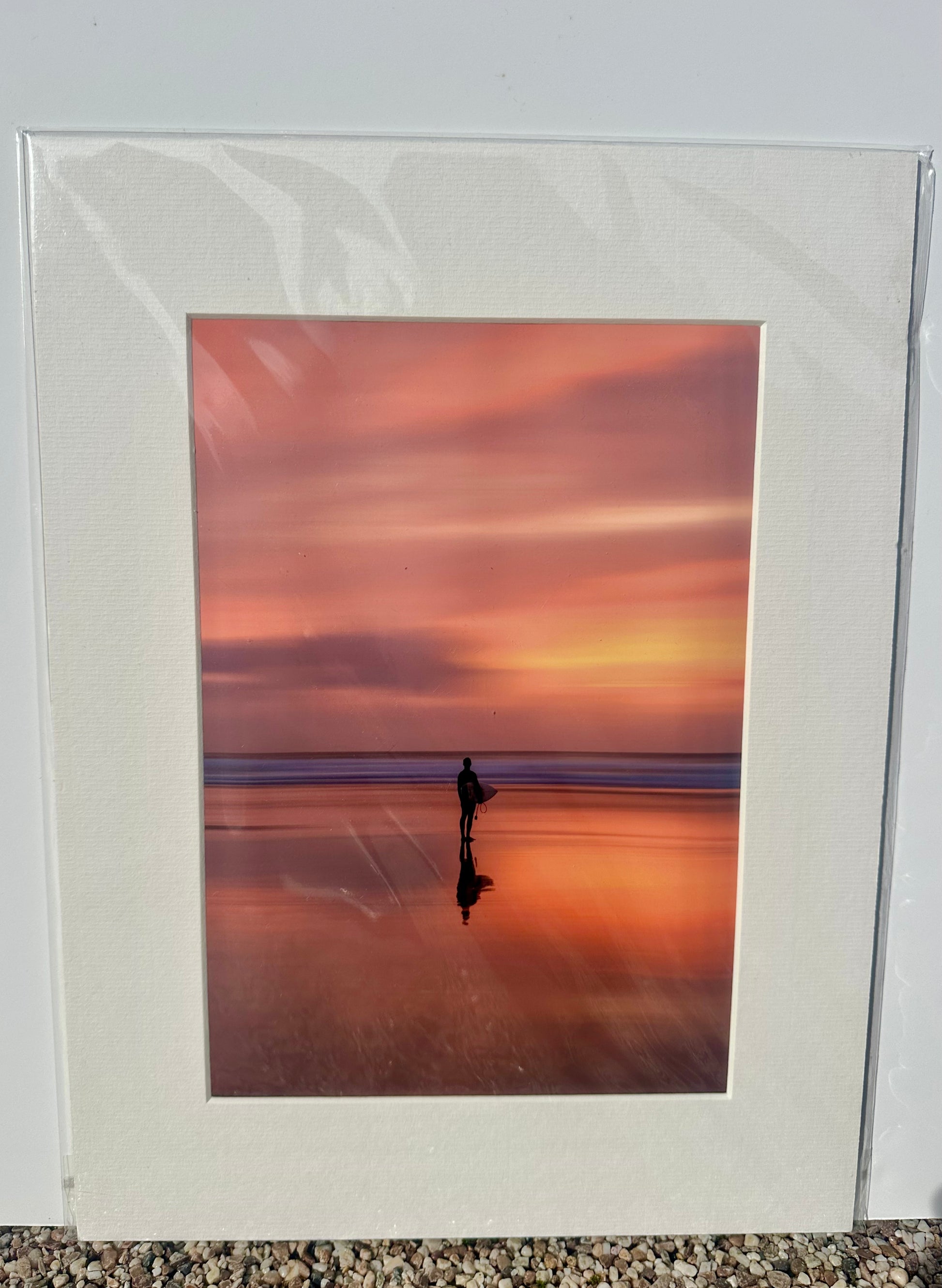 Perranporth surfer sunset a4 in 12 x16 mount